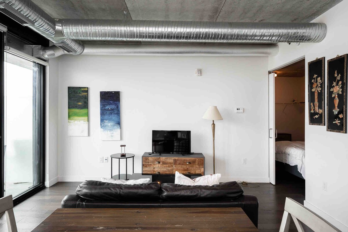 Impresionante suite en la zona centro, equipada para viajeros de negocios que quieran estar en el centro. Esta unidad está en un octavo piso con ventanales del suelo al techo. Si reservas con nosotros, espera una unidad limpia, espaciosa, bien decorada y totalmente equipada, preparada para todas tus necesidades. ¡No te decepcionarás! Los dos dormitorios permiten privacidad si viajas con familiares, amigos o compañeros de trabajo. También incluimos plaza de aparcamiento gratuita en el aparcamiento adjunto al edificio.
