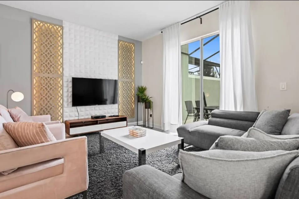 Moderna casa de 4 dormitorios junto a un lago con habitaciones temáticas cerca de Disney