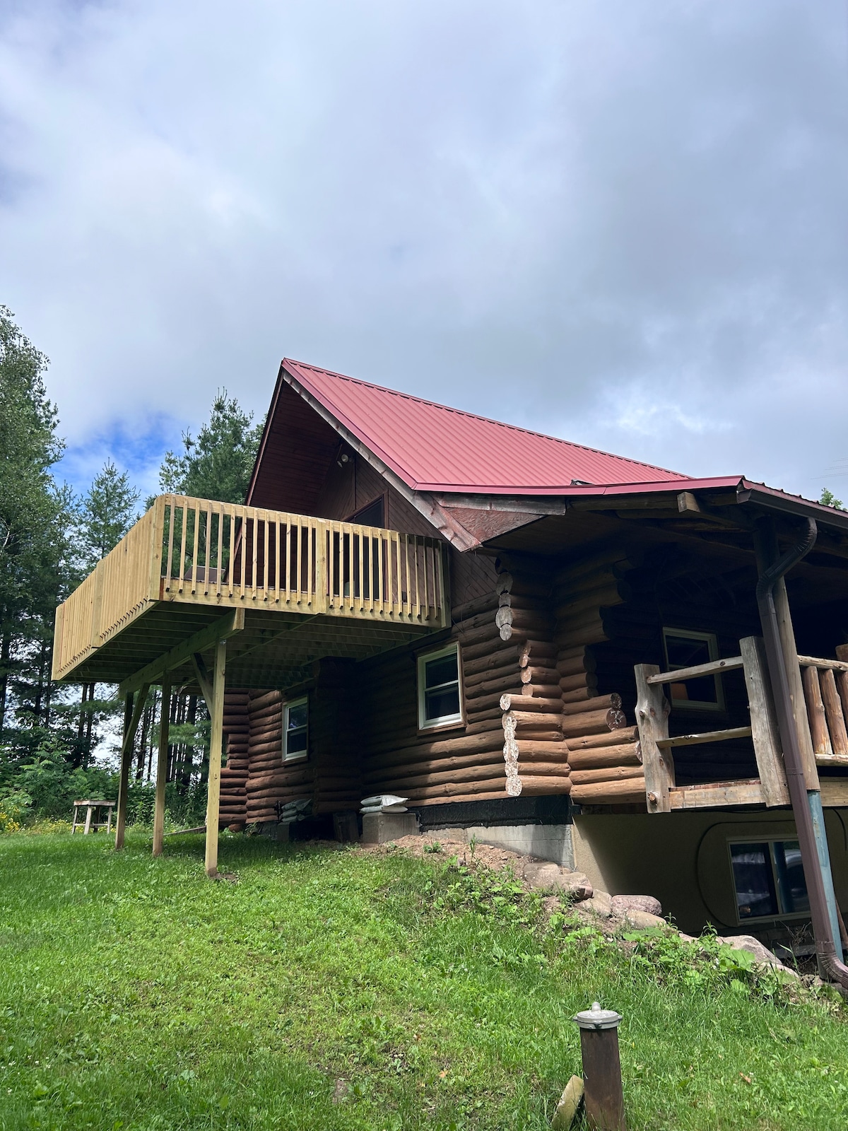 One of a kind log cabin, peaceful and spacious. Enjoy the view from the huge deck, watch birds and all kinds of wildlife while you're surrounded by nature. Break free from the city and relish the beauty out here at Big Guy's Cabin. Lots of great hunting and fishing spots within a few blocks, and many other activities to indulge in! North Star Casino is approximately 10 minutes away and they offer shuttle service to visitors! ***Recently Added a Sauna and Hot Tub!