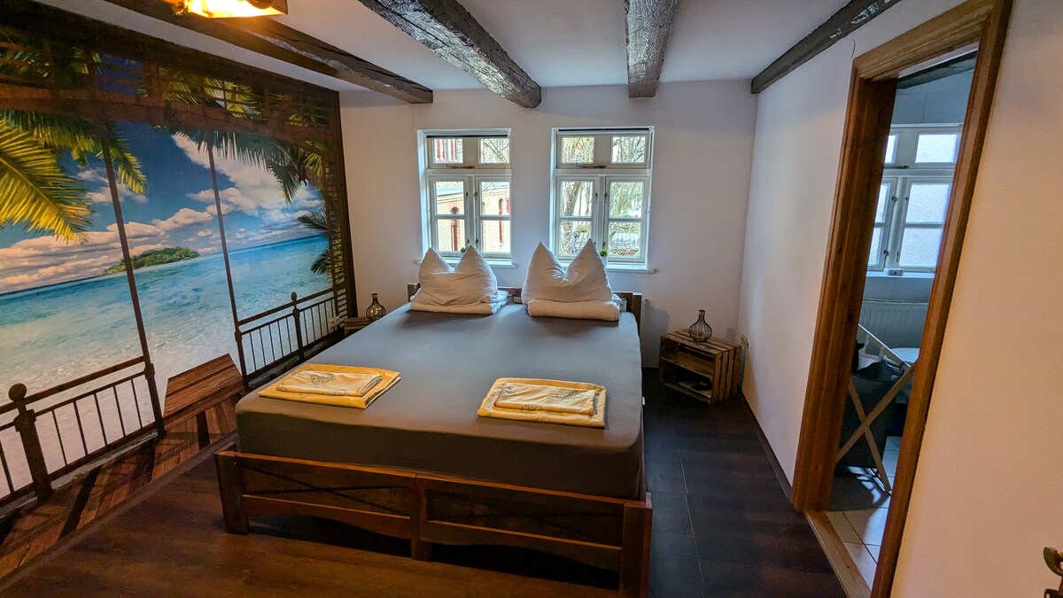 COVID-19 (Corona): Wir sind vorbereitet und ermöglichen Ihnen auf Wunsch einen kontaktlosen Check- in ebenso wie eine kontaktlose Abreise! Sie finden dabei eine frisch desinfizierte Ferienwohnung vor! Wir laden Sie ein, in einem Denkmalgeschützten Fachwerkhaus, Baujahr 1654, zu übernachten. Die geräumigen Zimmer sind in Eigenarbeit liebevoll eingerichtet. Eine große helle Küche , Bad mit Badewanne , Gäste WC, gratis Parkplätze, freies WIFI sowie ein eigener Hauseingang stehen Ihnen zu Verfügung.