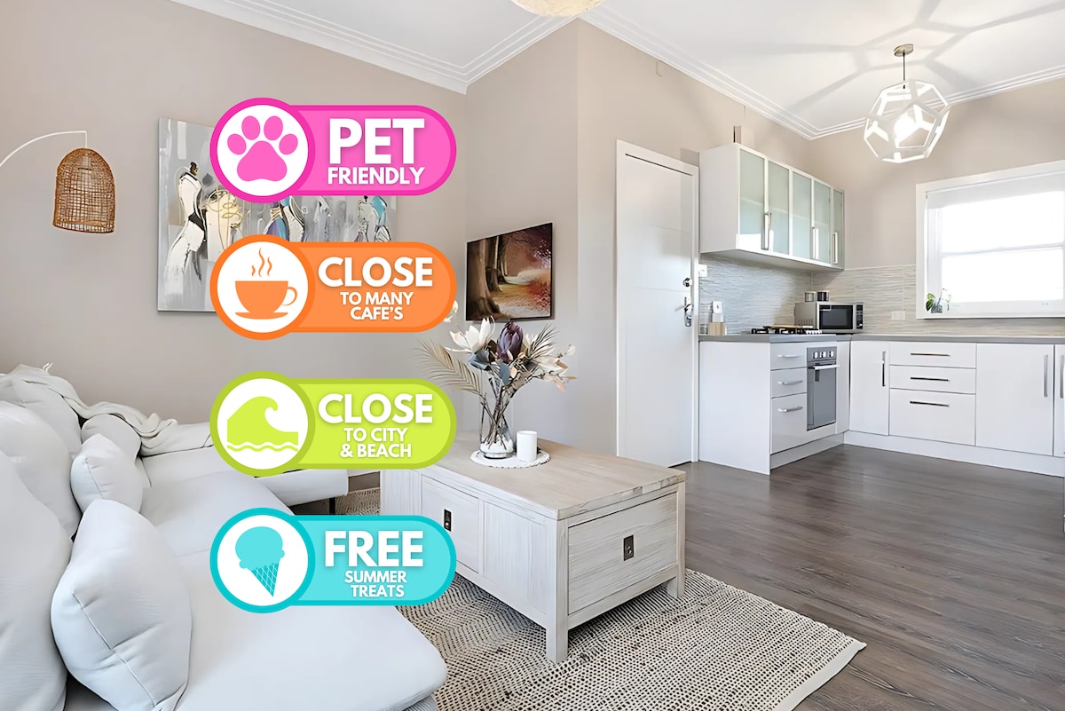 Te sentirás como en tu propia casa en este alojamiento maravillosamente renovado, idealmente ubicado a pocos pasos de las playas de Wollongong North y Cove, además de cafeterías, boutiques y restaurantes de los alrededores. Luminoso y luminoso, puede disfrutar de una cocina bien equipada y una elegante sala de estar con una acogedora chimenea, un amplio sofá y una cama para perros, que proporcionan un refugio acogedor para usted y su amigo peludo. El estacionamiento gratuito y un espacio de trabajo dedicado se suman a tu comodidad diaria.