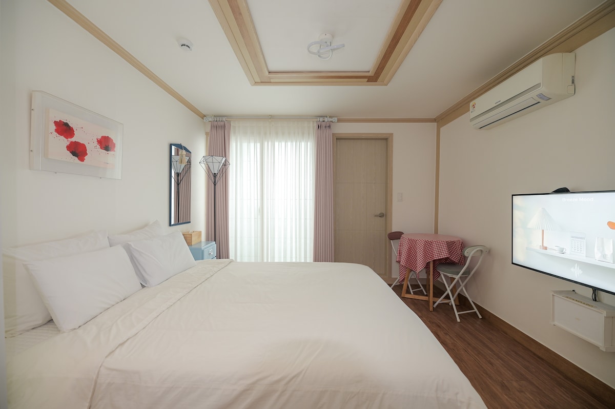 Calle Hwangridan, cerca de la terminal, habitación 2, 2 camas queen, aldea de cerezos en flor de Heungmu, ropa de cama para bebés, mañanas tranquilas, limpio