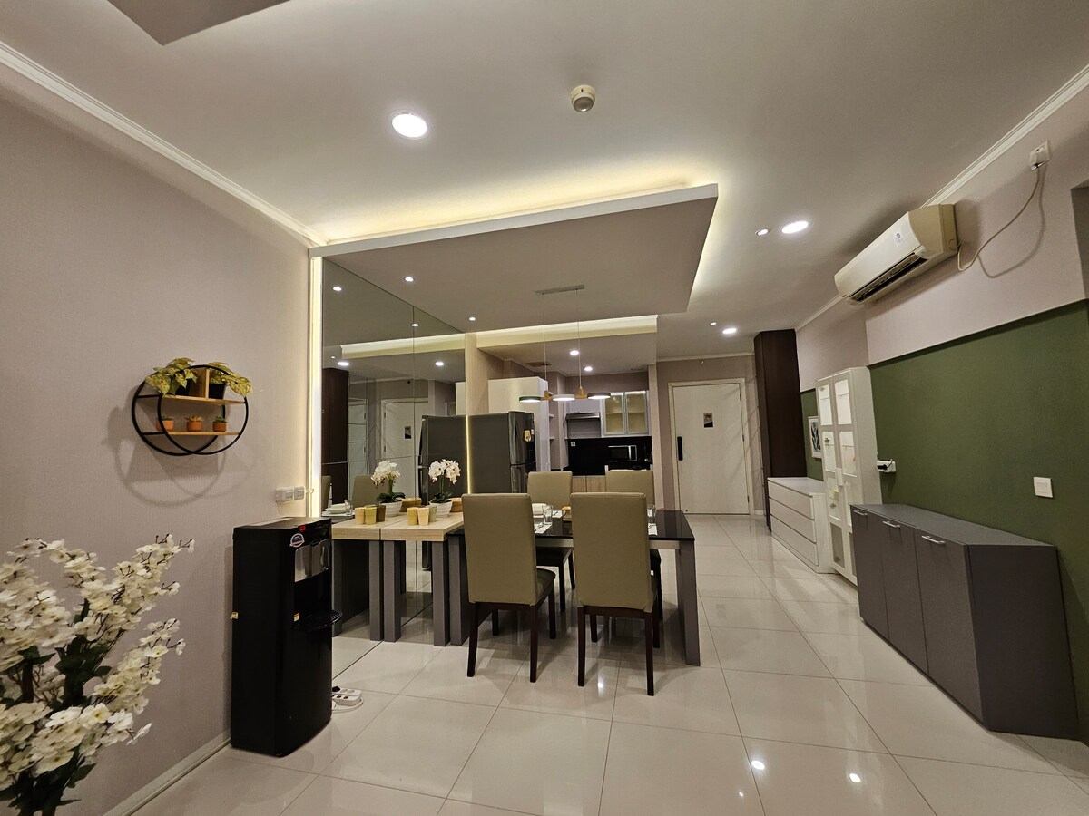 Bring the whole family to this great place with spacious space for fun & relaxation - connected directly to Ciputra World Mall Surabaya. Everything you need is right at your doorstep - explore, shop or just short getaway with your family and friends. What You will love: - Cozy yet spacious living room with dining area - 2 modern bedrooms with comfortable bed and linens - A fully equipped kitchen and washing machine - Smart TVs and free WIFI - 2 bathrooms with hot/cold shower
