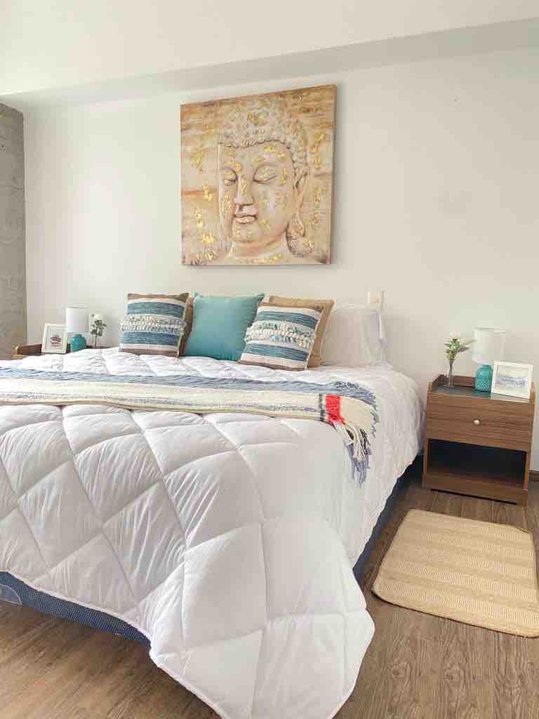 Relájate en esta escapada única y tranquila, a un paso cruzando la calle del WTC, Pepsi Center, Plaza Toros y Estadio Cruz Azul, maravillosa ubicación . Edficio moderno y con acabados de buena calidad estilo industrial y buen gusto, techos altos. Cuenta con 2 recamaras una con balcón, 2 baños completos, sala comedor, cocina abierta y estacionamiento. Te voy a solicitar identificación de todos los huéspedes por mensaje una vez que confirmes reserva, es requisito del edificio para poder accesar.