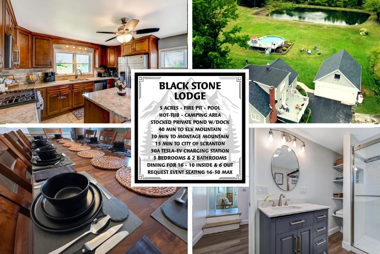 Esta cabaña de lujo recién remodelada se encuentra en el lago Kewanee, en el corazón de la región de las montañas Endless del noreste de Pensilvania. Está a 2 minutos a pie del lago Kewanee para nadar/pescar y a 20 minutos de Elk Mountain y a 30 minutos de las estaciones de esquí de Montage Mountain. Ofrece excelentes campos de golf cercanos y más de 70 millas de rutas de senderismo y ciclismo. Rodeada de tierras de caza estatales para cazadores. ¡Es una cabaña relajante y única! A solo 20 minutos de Scranton.