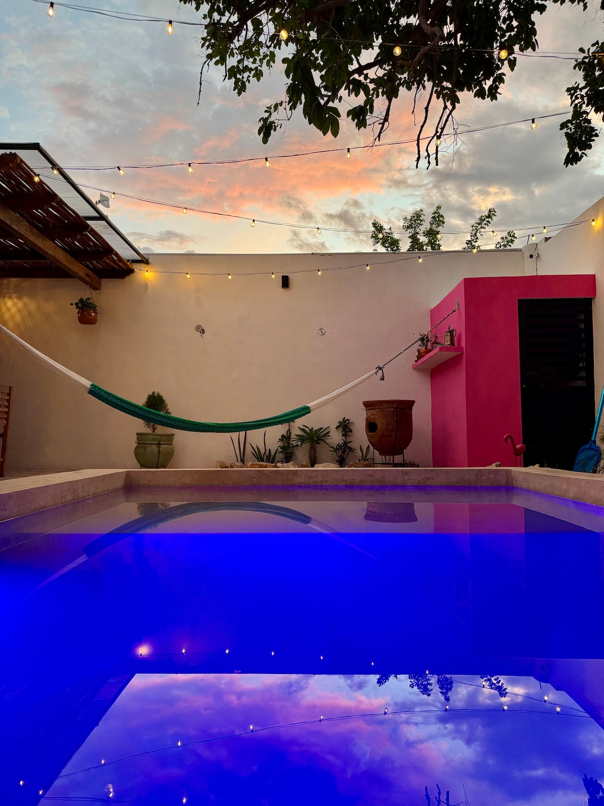 Relájate en este espacio único y tranquilo que busca traer el encanto de Mykonos a Mérida, Yucatán. Disfruta acostado en hamaca escuchando el sonido de la cascada, prepara una comida al aire libre en el asador, y explora los encantadores restaurantes y cafeterías cercanos. Con tecnología inteligente, internet veloz y ubicación ideal, ¡no hay duda de que de enamorarán de este pedacito de Grecia desde el momento en el que lleguen!