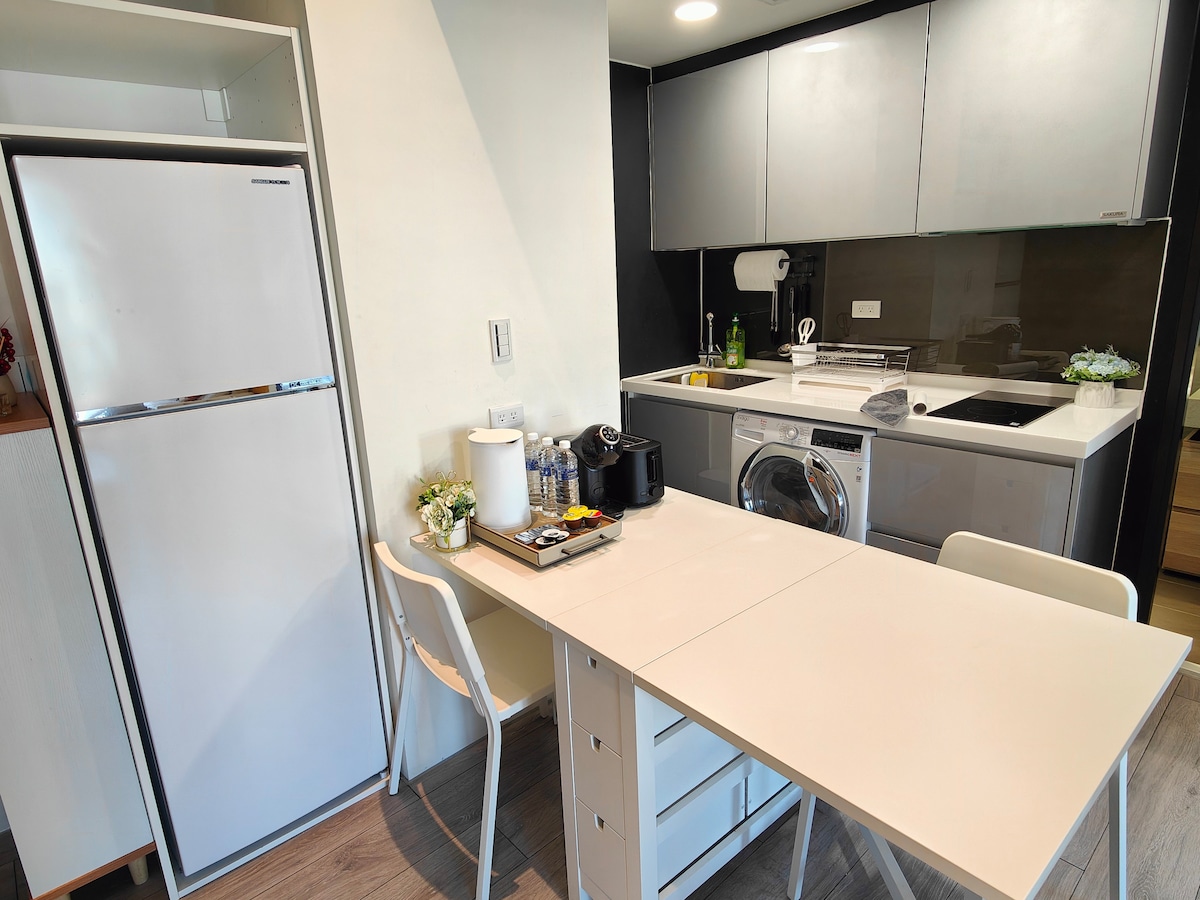 El estilo de diseño es minimalista pero acogedor, combinando la modernidad con un toque artístico.El espacio de planta abierta permite que fluya la luz natural y los pisos de madera complementan las paredes de color oscuro, creando un ambiente cómodo y de buen gusto.Los dos dormitorios están cuidadosamente diseñados para proporcionar un lugar privado y relajante para descansar, mientras que la sala de trabajo de lectura es el lugar ideal para la inspiración y la creatividad.Ubicada a pocos pasos del centro de la ciudad y del mercado nocturno, esta es la base perfecta para explorar Taichung.