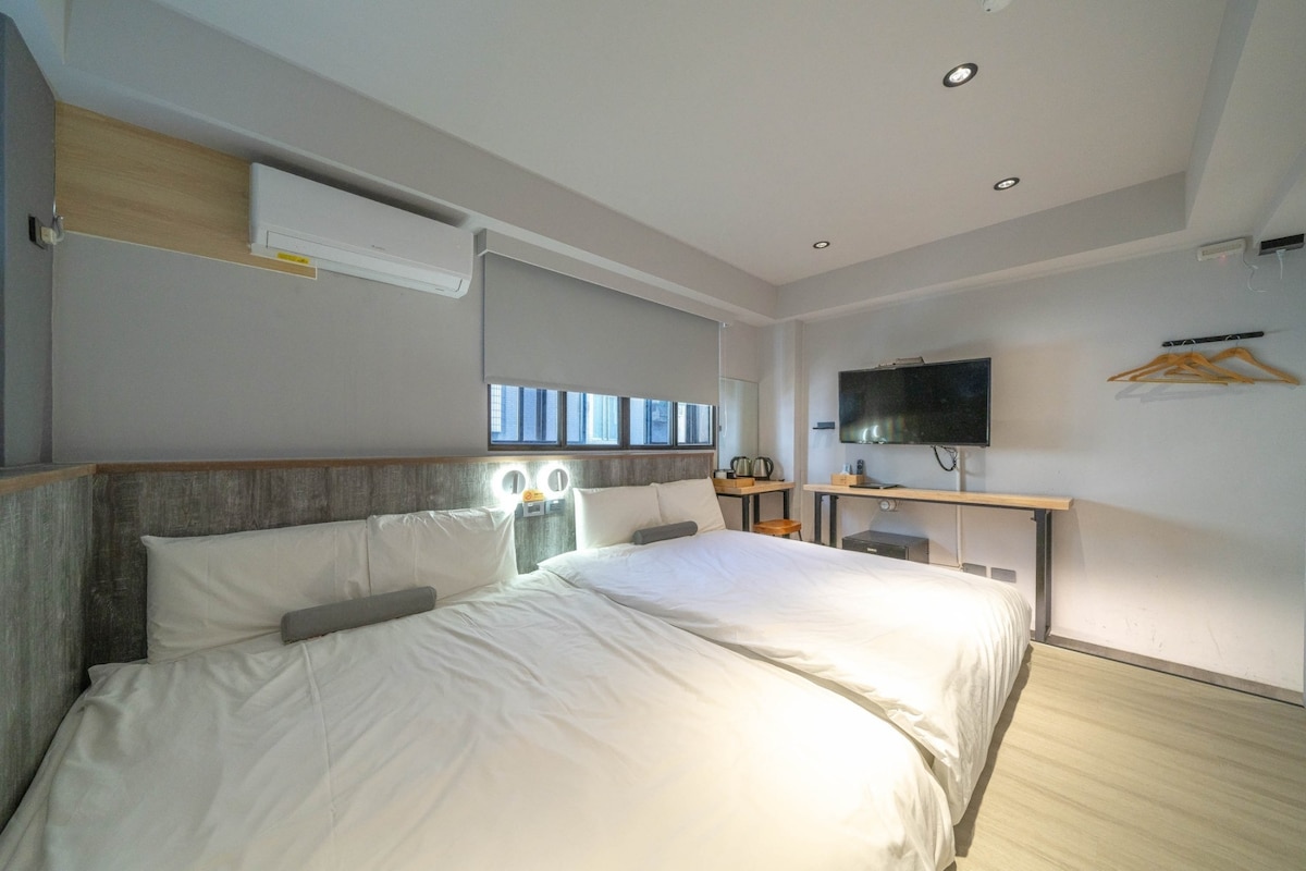 ¡Quédate en esta elegante y minimalista habitación doble y explora fácilmente las principales atracciones de Hualien! La habitación es luminosa y acogedora, con wifi privado, un televisor inteligente de 42pulgadas y un escritorio grande. Por cerca: lavandería, 7-Eleven, FamilyMart. El mercado nocturno de Dongdamen se encuentra a pocos pasos y la azotea ofrece vistas al mar. Baño privado, microondas en B1, bicicletas gratuitas. Estacionamiento grande gratuito disponible.