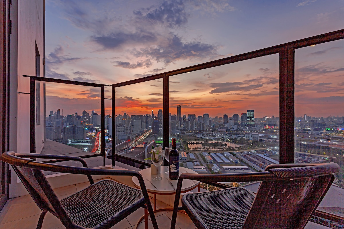 Estudio B1D en el centro de la ciudad/cerca del metro/vistas de la ciudad desde lo alto/área comercial de Siam/recogida gratuita/piscina al aire libre/gimnasio/bar en la azotea/recogida y traslado al aeropuerto durante cuatro noches