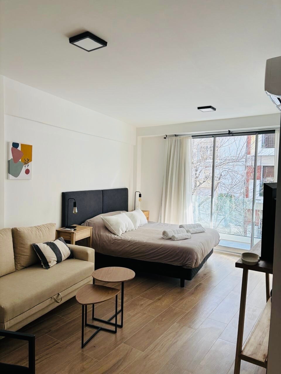 Estudio luminoso y completamente amueblado, con vibe moderna. Posee cocina completa, microondas y lavadora dentro del apartamento. Relajate y disfruta de nuestro hermoso monoambiente en pleno corazón de BA. Hermosas vistas a la ciudad desde nuestro balcón a la calle con doble ventanal, que lo hace muy luminoso. Se encuentra en Recoleta, en una ubicación ideal. Posee 3 líneas de Metro (Subte) a menos de 500mts. Ideal para turistas y para estar conectado con toda la ciudad sin complicaciones.