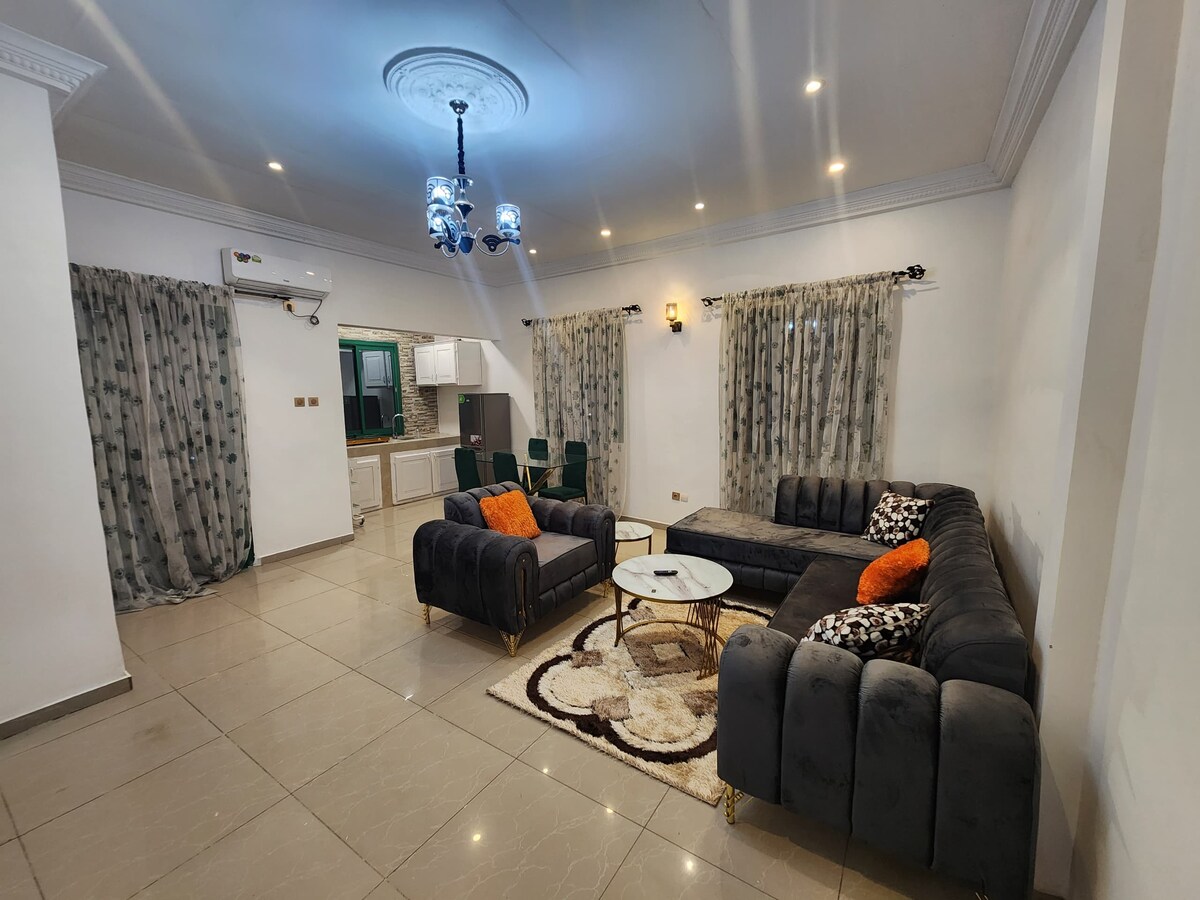 En un edificio reciente y seguro que consta de una sala de estar con TV de pantalla plana, un balcón, una cocina independiente con nevera, un dormitorio con aire acondicionado, una ducha con agua caliente, conexión wifi El alojamiento se encuentra en el barrio de Barriere (Yaounde III) a pocos minutos andando del supermercado Santa Lucia. Está a medio camino entre el aeropuerto de Nsimalen y la oficina de correos central. Alojamiento accesible en coche. Posibilidad de aparcamiento delante del edificio. Carretera asfaltada. Presencia de un guarda.