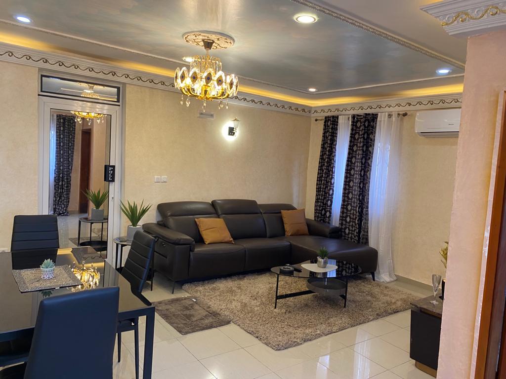 Profitez d’un appartement meublé moderne, confortable et entièrement équipé pour vos séjours. Vous y trouverez Wi-Fi Starlink, climatisation, TV écran plat, cuisine fonctionnelle et linge de maison. Situé dans un quartier calme et sécurisé, proche des commerces et restaurants, notre logement est idéal pour voyages d’affaires, séjours en couple ou vacances en famille. Confort, intimité et tranquillité garantis.