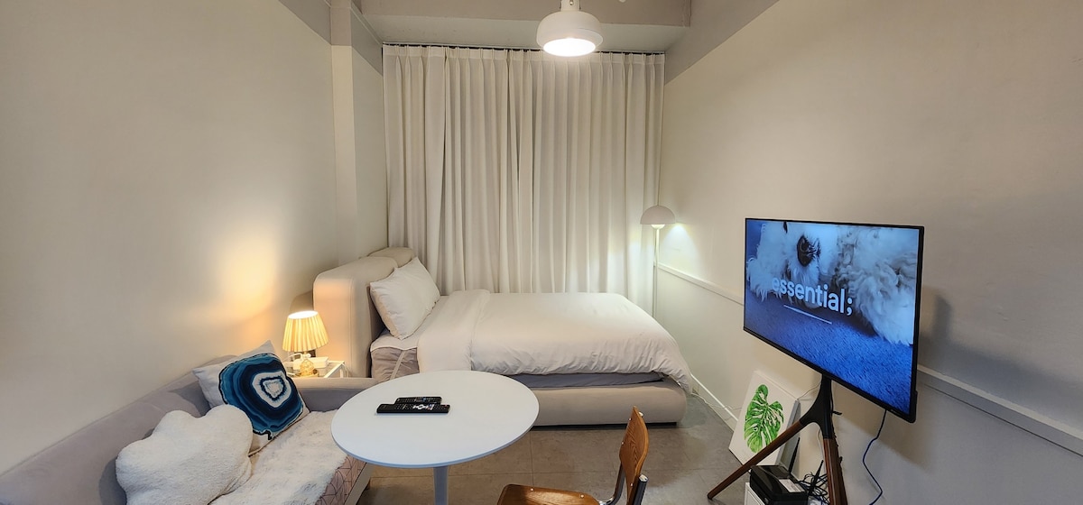 Abril/Mayo / Alojamiento / Dongdaegu / A 2 minutos de la tienda KTX / Recomendado para estancias largas / Ropa de cama de hotel / NetFLIX en TV de 55 pulgadas / 2 habitaciones / 2 camas queen / Capacidad máxima para 6 personas