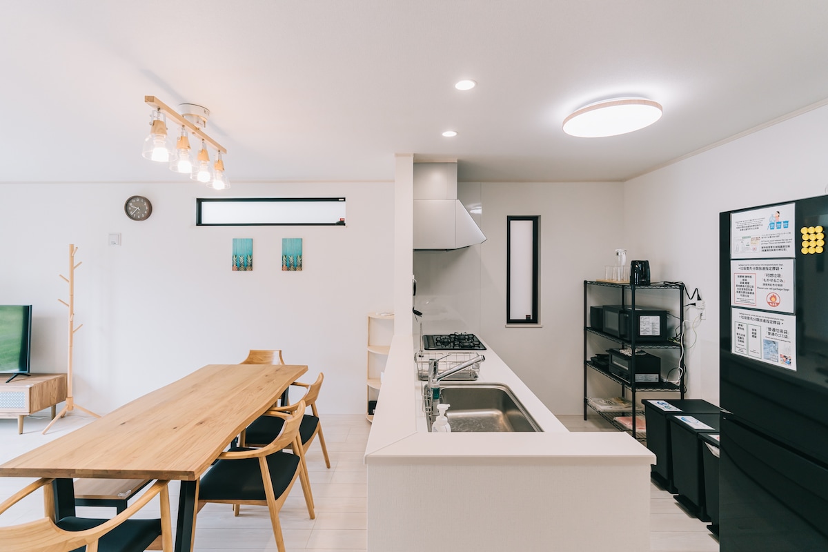 Relaxing and Fun for family Enjoy a stay where you can travel light! 🌿Step-free access, wheelchair ramp, handrails, and shower chair 👶 Kid-Friendly ✔️ Crib, high chair, stroller ✔️ Ship-shaped bed with toys & books ✔️ Welcoming for kids with special needs 🌊 Beach & Activities ✔️ 30 sec to the beach! ✔️ Diving, snorkeling, SUP, and pottery experiences ✔️ Hire a photographer for special memories 🔥 BBQ & Dining ✔️ BBQ grill rental 🐶 Dogs OK 💡 Perfect for Long Stays Gas dryer included.