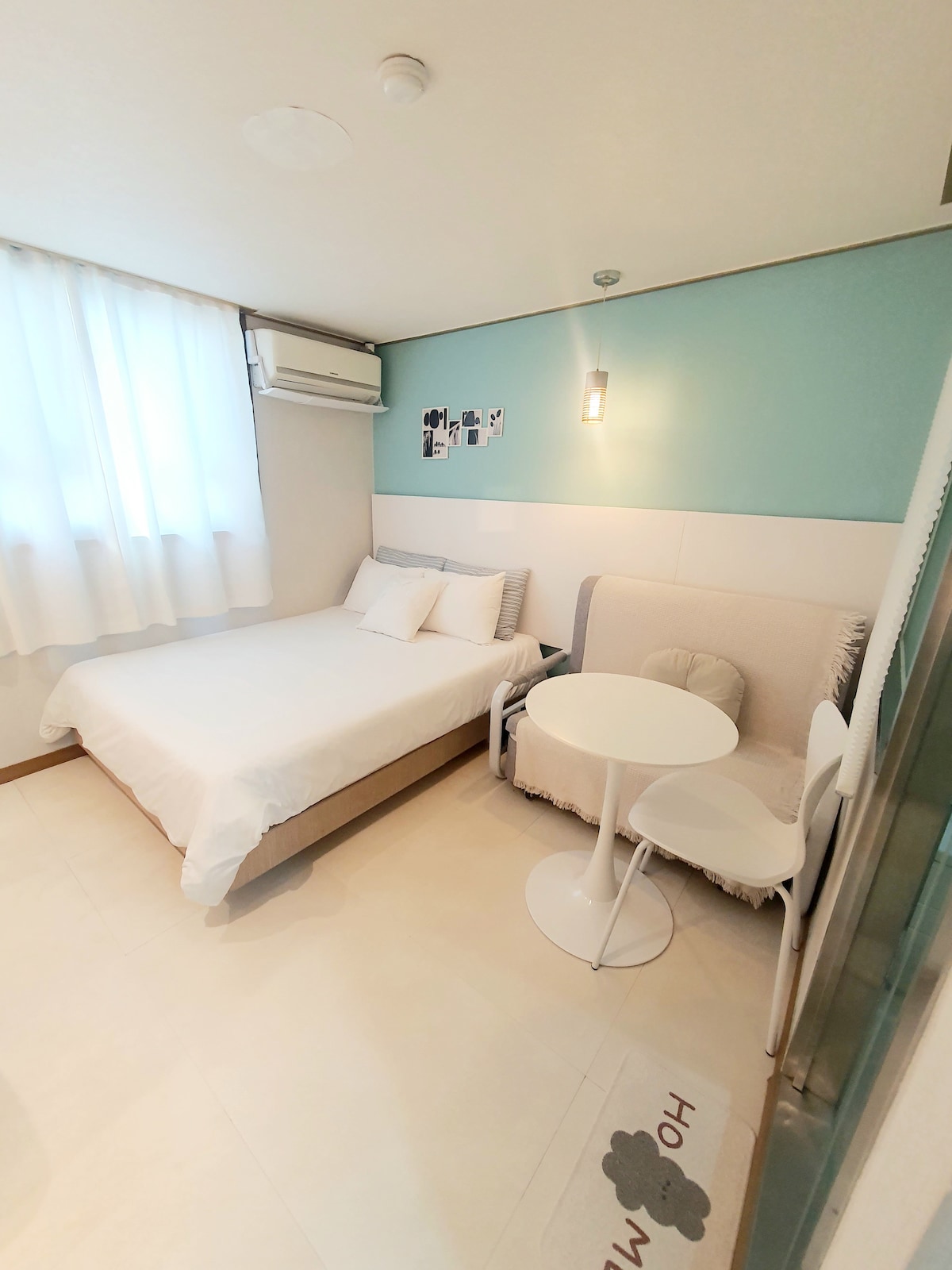 [Hotel Emaline - Vanilla Candy] Hasta 3 personas, 15 minutos de Hongdae, descuento por caminar, salida tardía, masaje, OTT, baño de medio cuerpo
