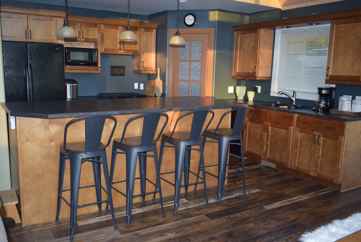Perfect place for one person or a group. This is a great space. Kitchen, dining area, living room, large master bedroom with King Bed. Second bedroom has double bed bunks, can accommodate 2 couples or be a children’s room. Gas fire place and baseboard heaters. Air conditioner. Wifi available. Fire table on the back deck. Perfect home away from home after a day at the beach, golfing,fishing,snowmobiling, ice fishing or just ‘getting away’