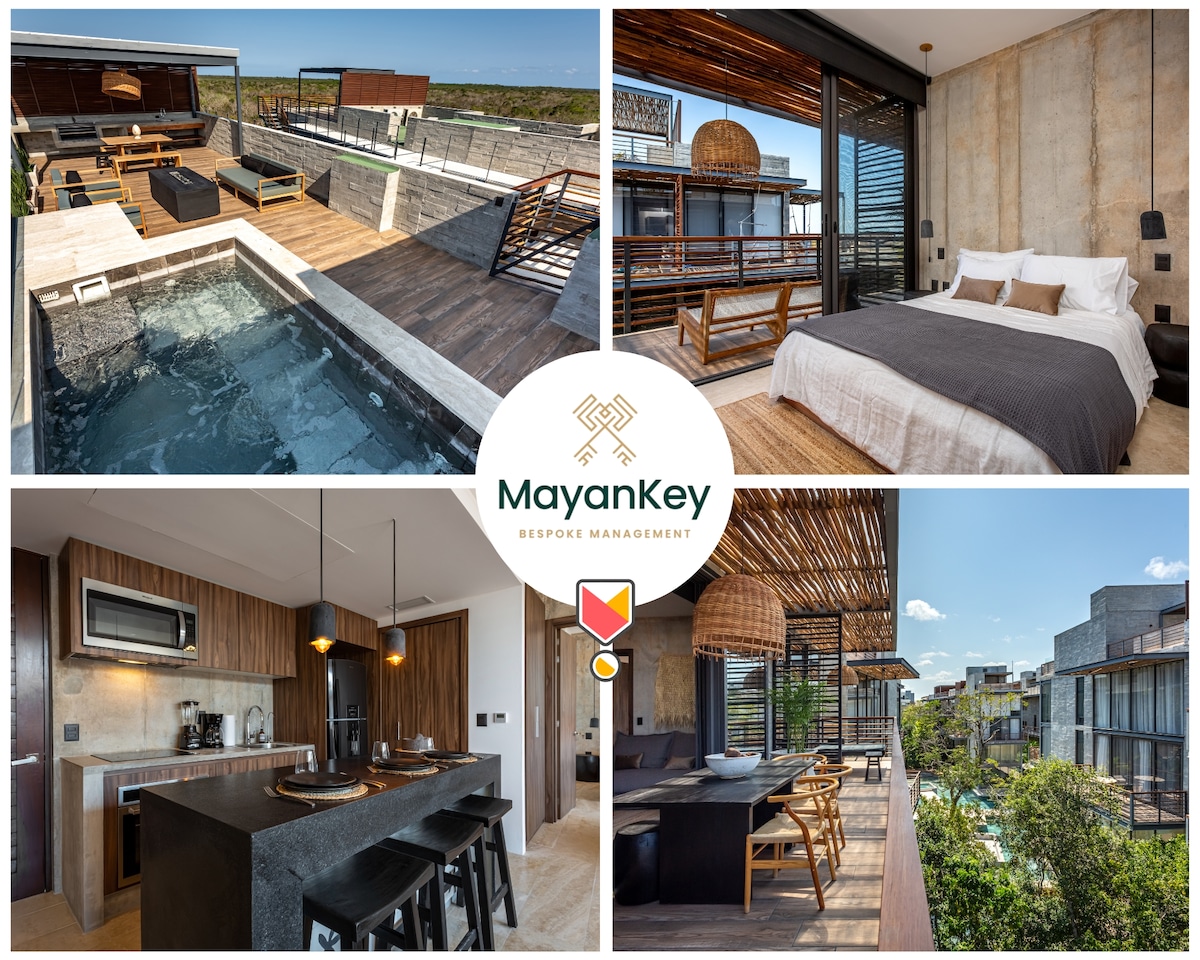 Welcome to a beautiful condo nestled within the vibrant La Veleta. This two-bedroom sanctuary is tastefully decorated, blending comfort, style, and functionality. The heart is a cozy living room that opens up to a totally private terrace and pool, providing all you need for a memorable stay. This apartment is inside boutique development Chukum Nah, with only 9 exclusive units inspired by Wabi-Sabi philosophy, to be defined as understated elegance with a focus on a less-is-more mentality.