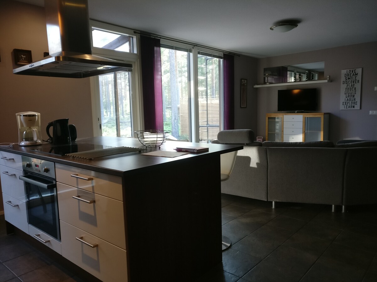 Ilmastoitu saunallinen asunto jokirannasta