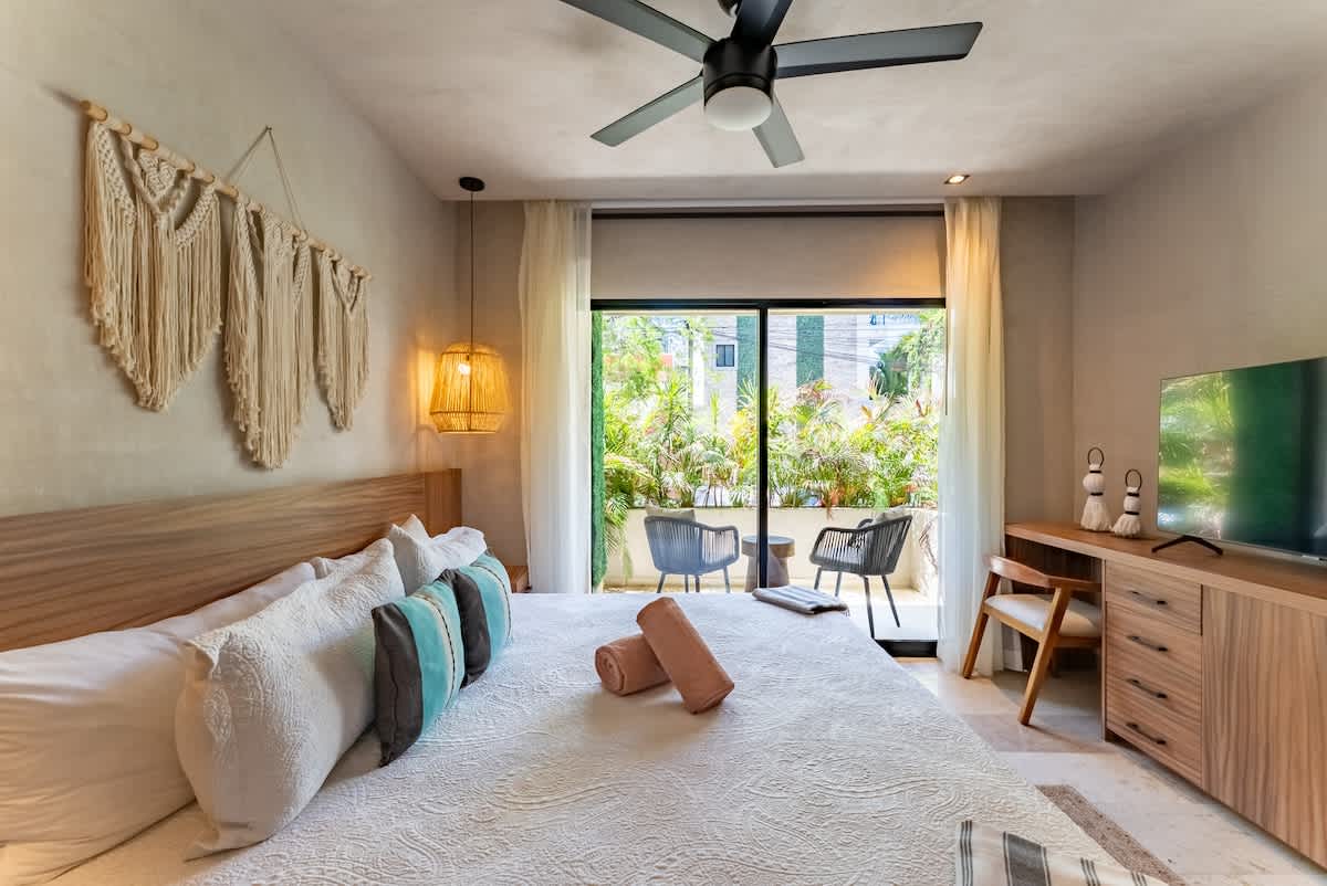 3 Min Walk to Centro Tulum 5 Min Drive to Tulum Beach 5 Min Drive to Tulum Ruins When you stay in this beautifully designed, modern studio located right near Centro Tulum, indoor and outdoor living blend together seamlessly. Modern with fiber WiFi, and open bedroom, a sleek modern kitchen, spacious living areas, and luxurious pools, this quiet retreat is also minutes from the best restaurants and bars. Balcony is next to a serene waterfall. Experience Tulum With Us & Learn More Below!