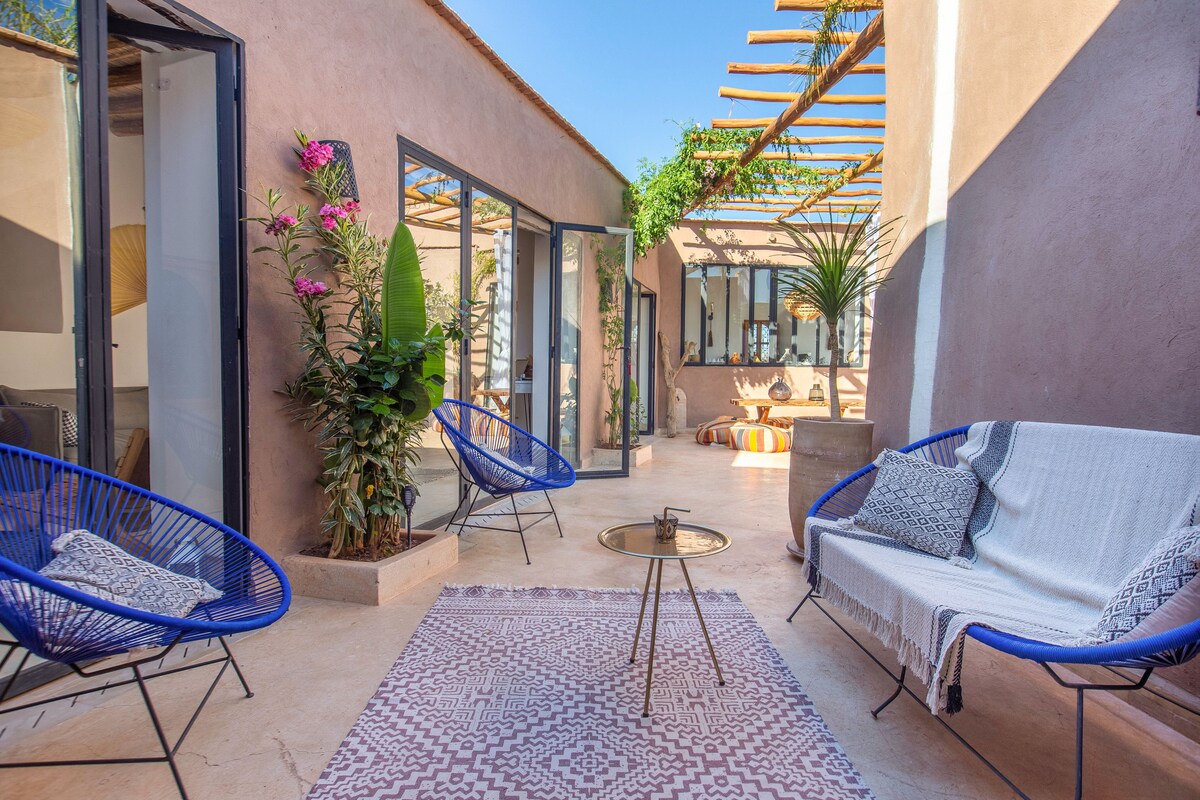 Villa Riad Perle d'Annellia, con piscina privada, se encuentra a unos 7,5 km de Marrakech. Ofrece 3 piscinas, terraza, WiFi y estacionamiento privado, dentro de una residencia segura. Totalmente climatizada, la villa incluye 2 suites con baños privados, 2 salones y 1 cocina equipada. Se proporcionan toallas y sábanas. Los huéspedes pueden disfrutar de 2 piscinas compartidas, 1 zona infantil, tiendas y restaurantes cercanos y un servicio de conserjería.