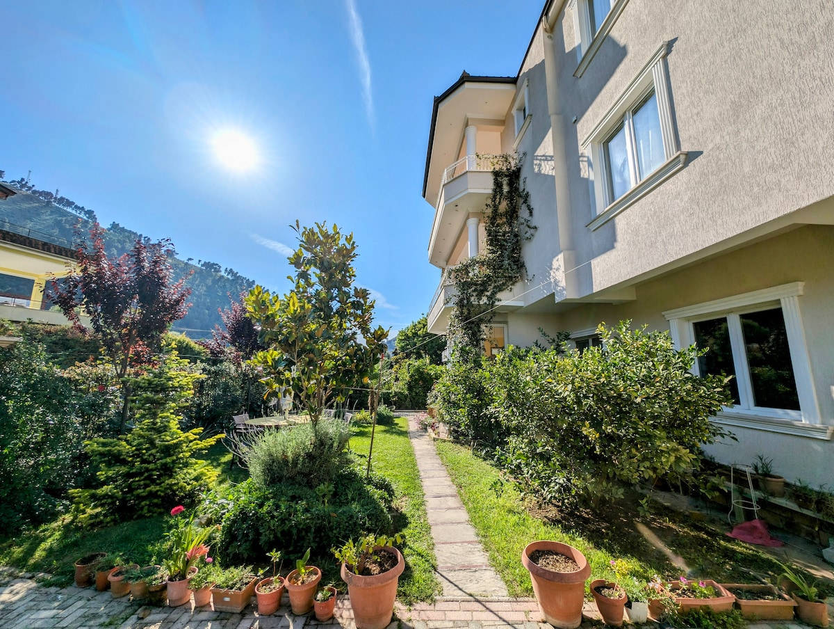Located at the highest point of Pestani (Ohrid), the yours suite (second floor) offers a unique view of Lake Ohrid and mountain Galicica. Surrounded by greenery and an abundance of nature, you can enjoy on one of the 5 terraces overlooking the lake or the mountain, or simply sit in the garden by the fountain and listen to the sound of the river. In your de luxe suite you have 2 bedrooms, 1 living room, a full equipment kitchen, bathroom, toilet, closed terrace with fire p and huge green garden.