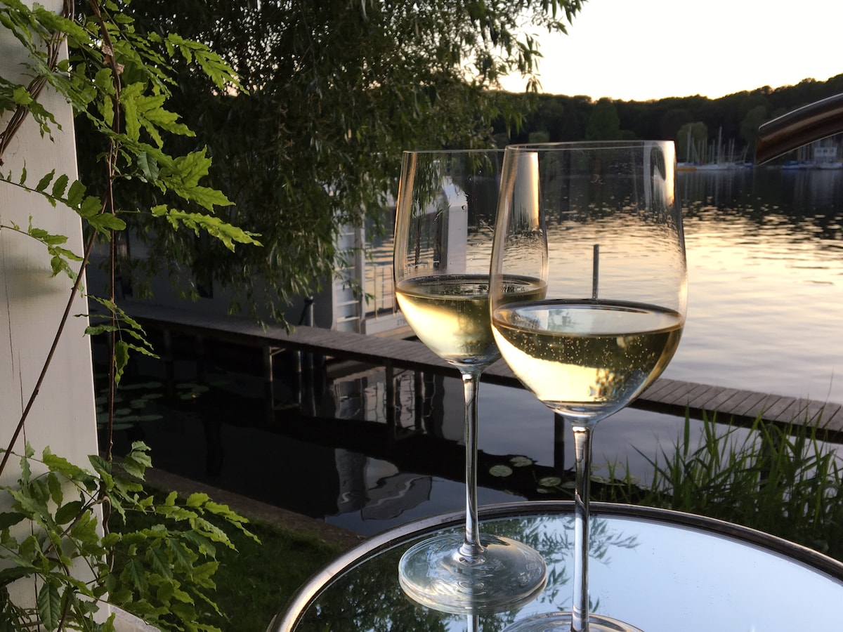 Oasis frente al lago en Berlín-Kladow con embarcadero privado y acceso privado al agua. La casa tiene dormitorio, cocina/cocina abierta y totalmente equipada y un baño. Estacionamiento gratuito frente a la propiedad. El lago de natación más limpio de Berlín. A solo 30 minutos en auto del Ku'damm o en 15 minutos de Potsdam. Bien conectado con transporte público, supermercados y panaderías cerca. Muchos restaurantes agradables y el muelle del ferry a Wannsee cerca. (Número de registro oficial: 05/Z/AZ/010374-22)