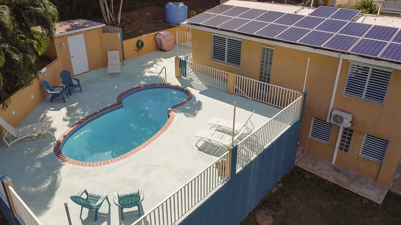 Relax and refresh at this unique and tranquil island getaway. Set in the tropical hillside of Mount Resaca, Casita Agua at Campo Alto is the perfect escape while visiting our beautiful island! Spend your days adventuring and your evenings relaxing in the pool. Our casita provides the perfect space for single travelers or couples looking to get away from it all! This studio unit features a dedicated plunge pool, queen bed, kitchenette and custom bath. Casita Agua has a backup water cistern.
